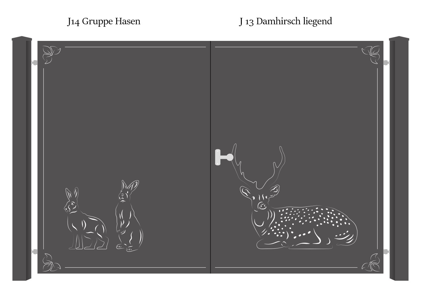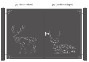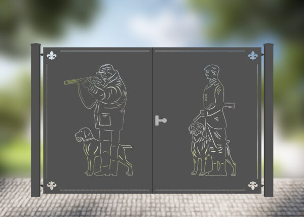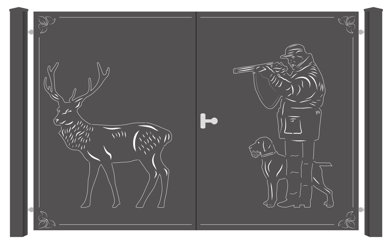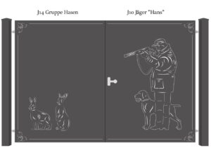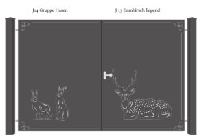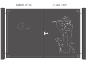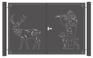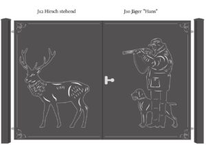 Übersicht Dekorative Hoftore / Gartentore als Doppeltor mit Jagd-Motiven
