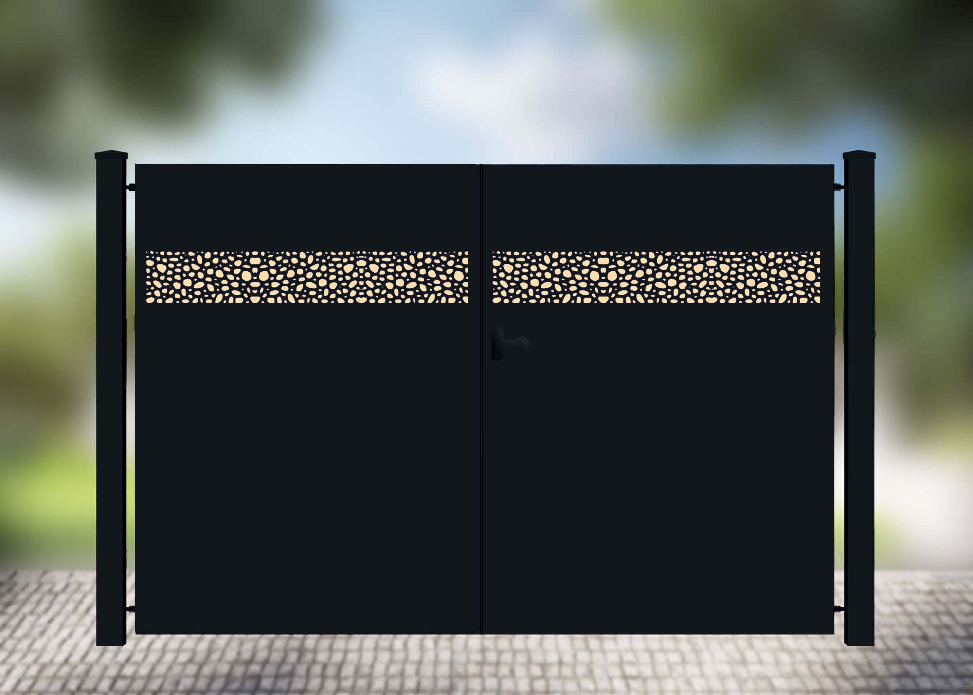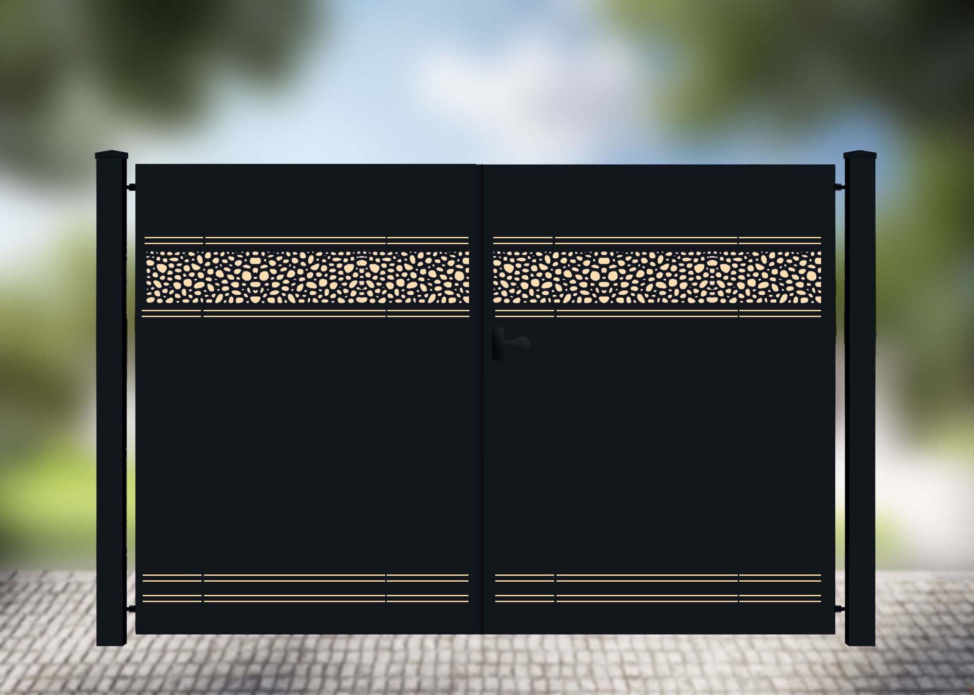 Hoftor / Gartentor als Sichtschutz mit Motiv “Kiesel”