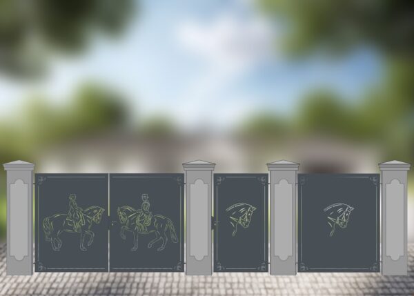 Dekoratives Hoftor / Gartentor mit Pferdesport-Motiven