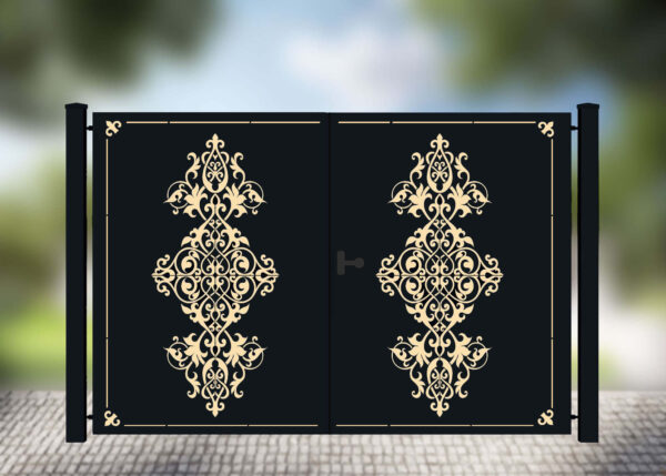 Dekoratives Hoftor / Gartentor mit Sichtschutz -Motiv “Mosaik”