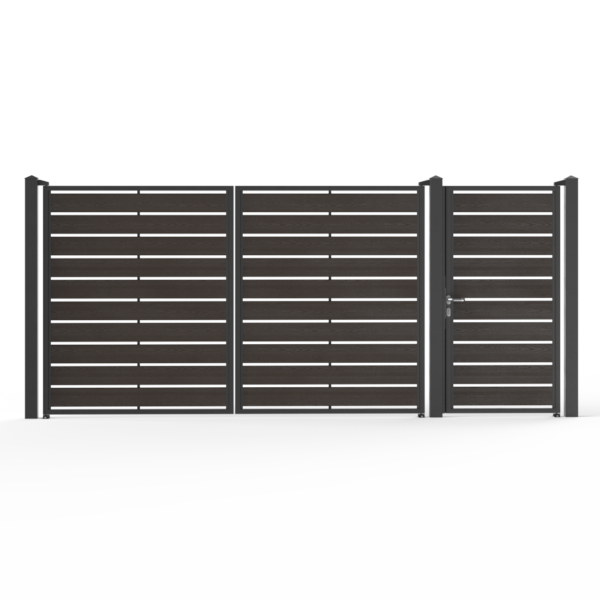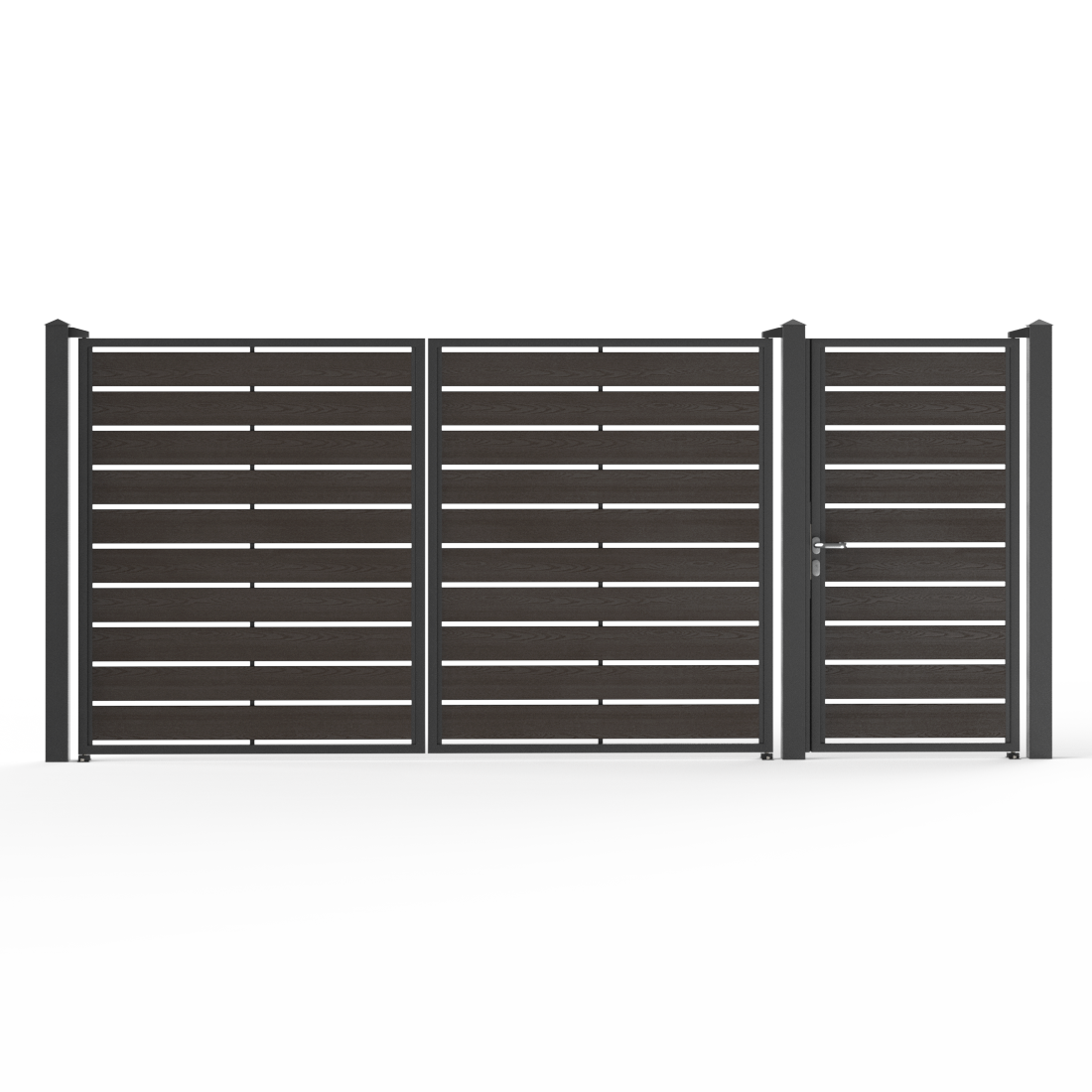 Doppelflügel Hoftor mit Tür und WPC-Elementen
