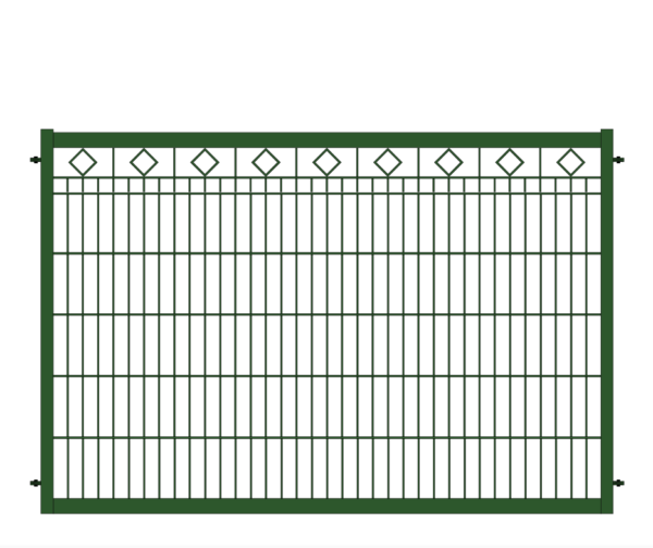 Eingeschweißte Doppelstabmatte (Draht Ø 6/5/6mm) als Füllung, Doppelstab-Maschenweite ca. 50 x 200mm.